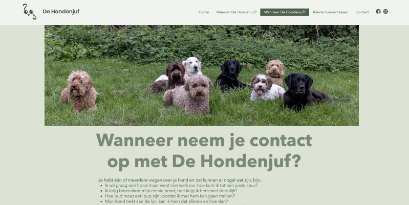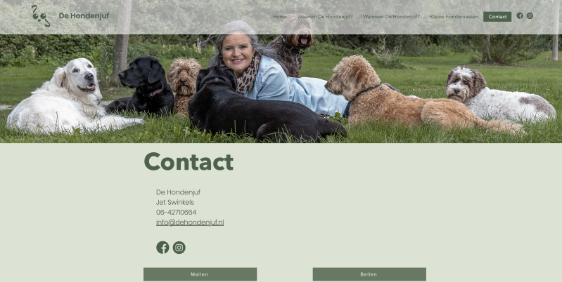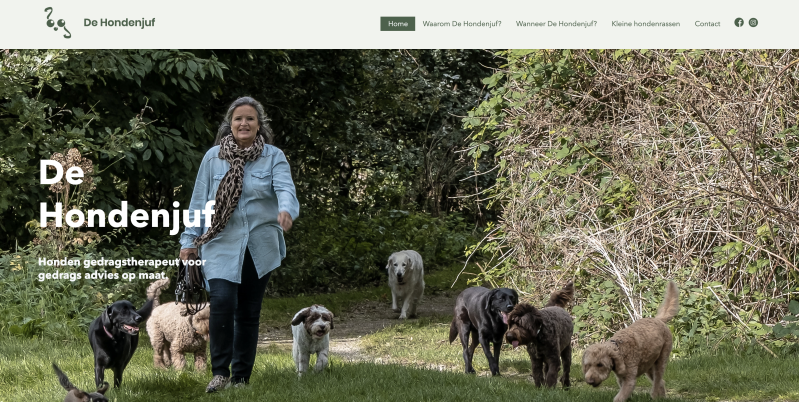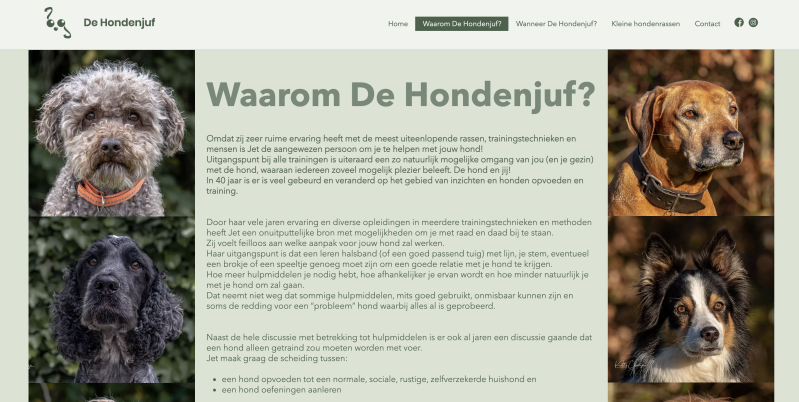 Jet De Hondenjuf vroeg aan mij of ik haar wilde helpen met het ontwerpen van een nieuwe website. Ze had al jaren lang een website maar die was nooit meegegaan met de tijd, het werd tijd voor wat meegaans.